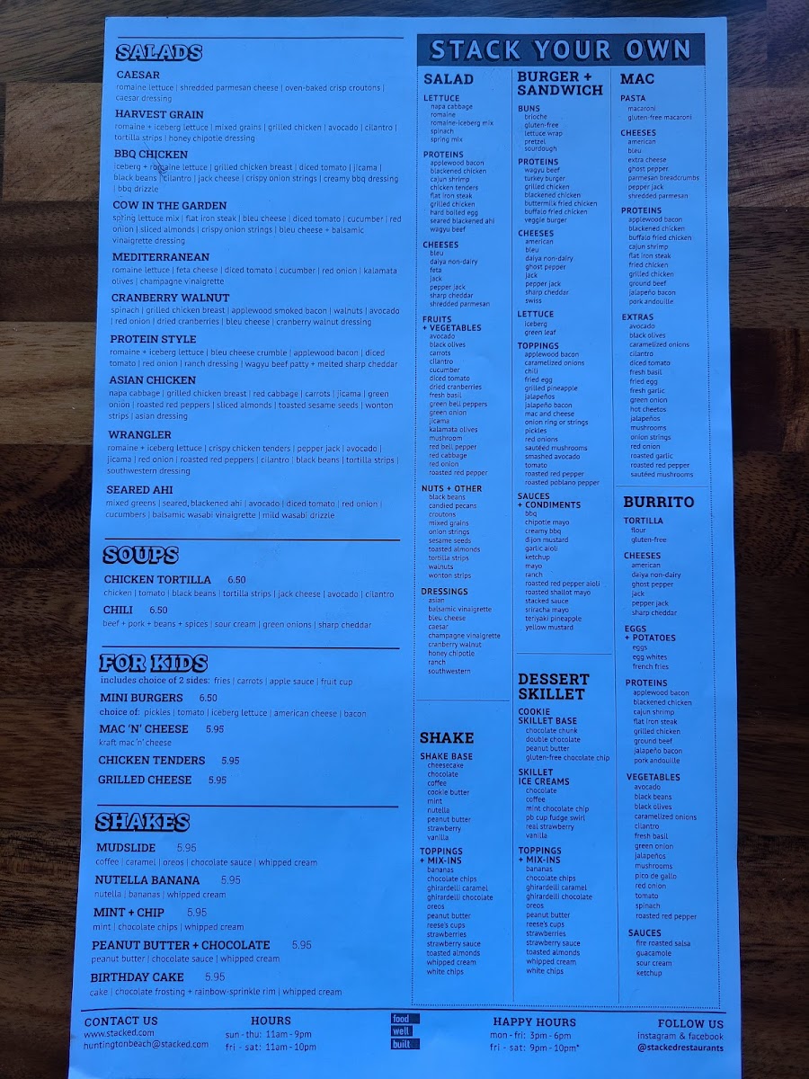 7490 Edinger Ave, Huntington Beach, CA 92647. Whether you're in the mood for a hearty breakfast, a satisfying lunch, or a delightful dinner, this culinary gem is dedicated to serving you a meal that's not only delicious but tailored to your cravings.The atmosphere at STACKED is lively and welcoming, making it an ideal spot for friends, families, or even a casual date night. With a touch of modern decor and the buzz of happy diners, every visit here feels like a mini celebration. Imagine yourself enjoying great music paired with delightful bites, where every meal is crafted with love. There’s a reason why this spot is a local favorite.