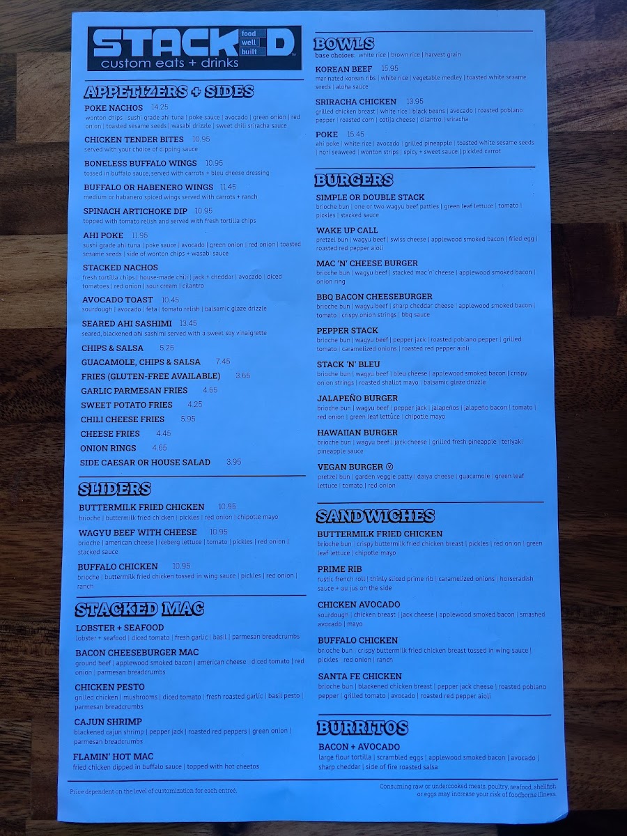 Welcome to STACKED: Food Well Built, a vibrant New American restaurant located at